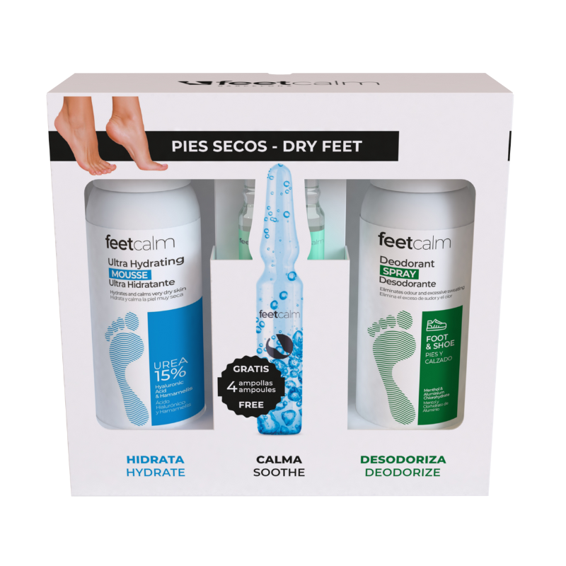 - MOUSSE ULTRA HIDRATANTE, 75ml: Crema en espuma formulada para hidratar en profundidad y aportar alivio inmediato a pies y piernas irritadas. Con 15% de Urea, Ácido Hialurónico, Aceite de Oliva y Hamamelis, favorece el flujo de la sangre aliviando la pesadez en pies y piernas.